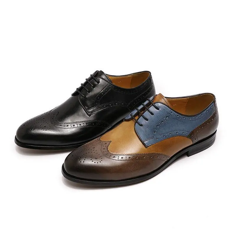 Leather Casual Men's Shoes With Color Matching Laces